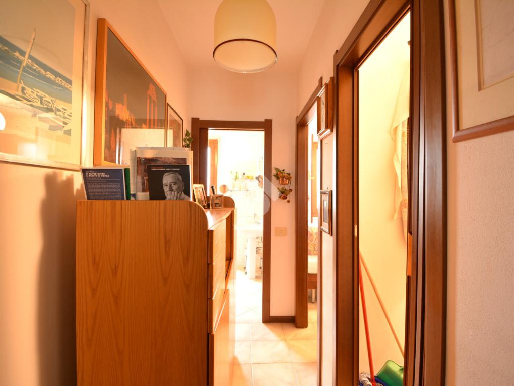 Appena entrati troviamo il soggiorno con angolo cottura servito di uscita sull’ ampio balcone, sulla destra, un disimpegno che conduce alla zona notte composta da ripostiglio, camera matrimoniale, bagno servito di vasca.
